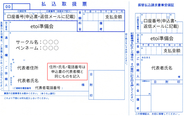 ※支払い方法に「郵便払込」を希望された場合は必ず払込取扱票をご利用いただき、