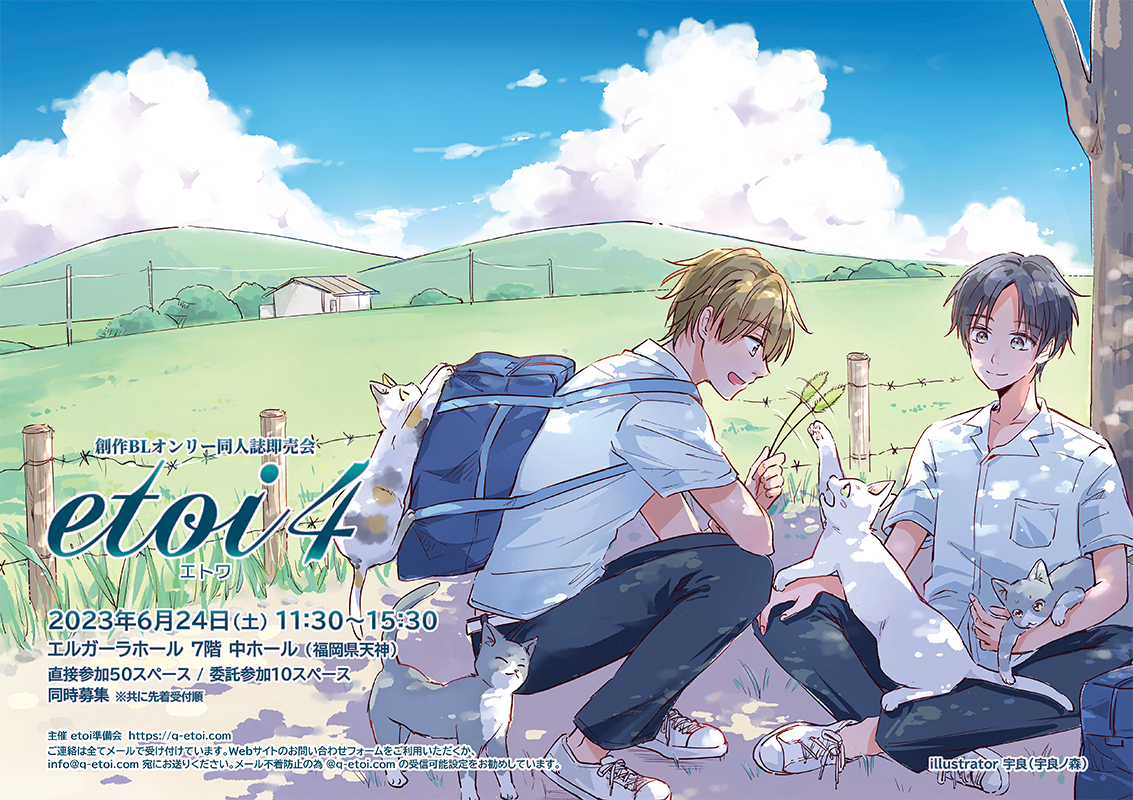 etoiは毎年6月頃に九州で開催する創作(オリジナル)BLオンリー同人誌即売会です。