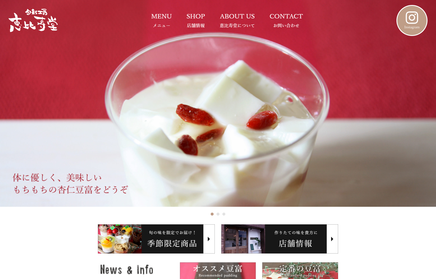恵比寿堂は、杏仁豆腐の専門店です。 もっちりとした食感の杏仁豆腐は、口溶けを楽しむ間にツルリと食べれてしまいます。 限定商品として季節に合わせたフルーツの商品や、ティラミス、モンブラン等のラインナップもあります。 さっぱりとした口当たりなので、食後のデザートにも持ってこいの一品です。 |