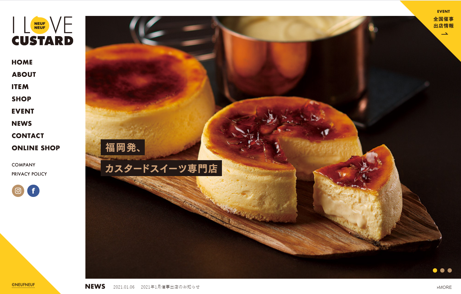 ヌフヌフは、カスタードをたっぷりと使用した生菓子、焼き菓子を販売しているお店です。 福岡県内には博多駅と福岡空港に店舗を構えています。 カスタードが好きな人には是非とも立ち寄って欲しいお店! 中でも【 ブリュレ カスタード 】は、パリパリのキャラメリゼの下に鎮座するふわふわながらにしっかりとしたチーズスフレと、その中に入ったとろとろのカスタードが絶品のケーキ。 ホールケーキは手が伸びづらいという人には、カップに入ったプチサイズの用意もあります。 福岡空港店では、ブリュレカスタードとベリーベリーカスタードのプチサイズが2個ずつ入ったお得なBOXが、数量限定で販売されています。 |