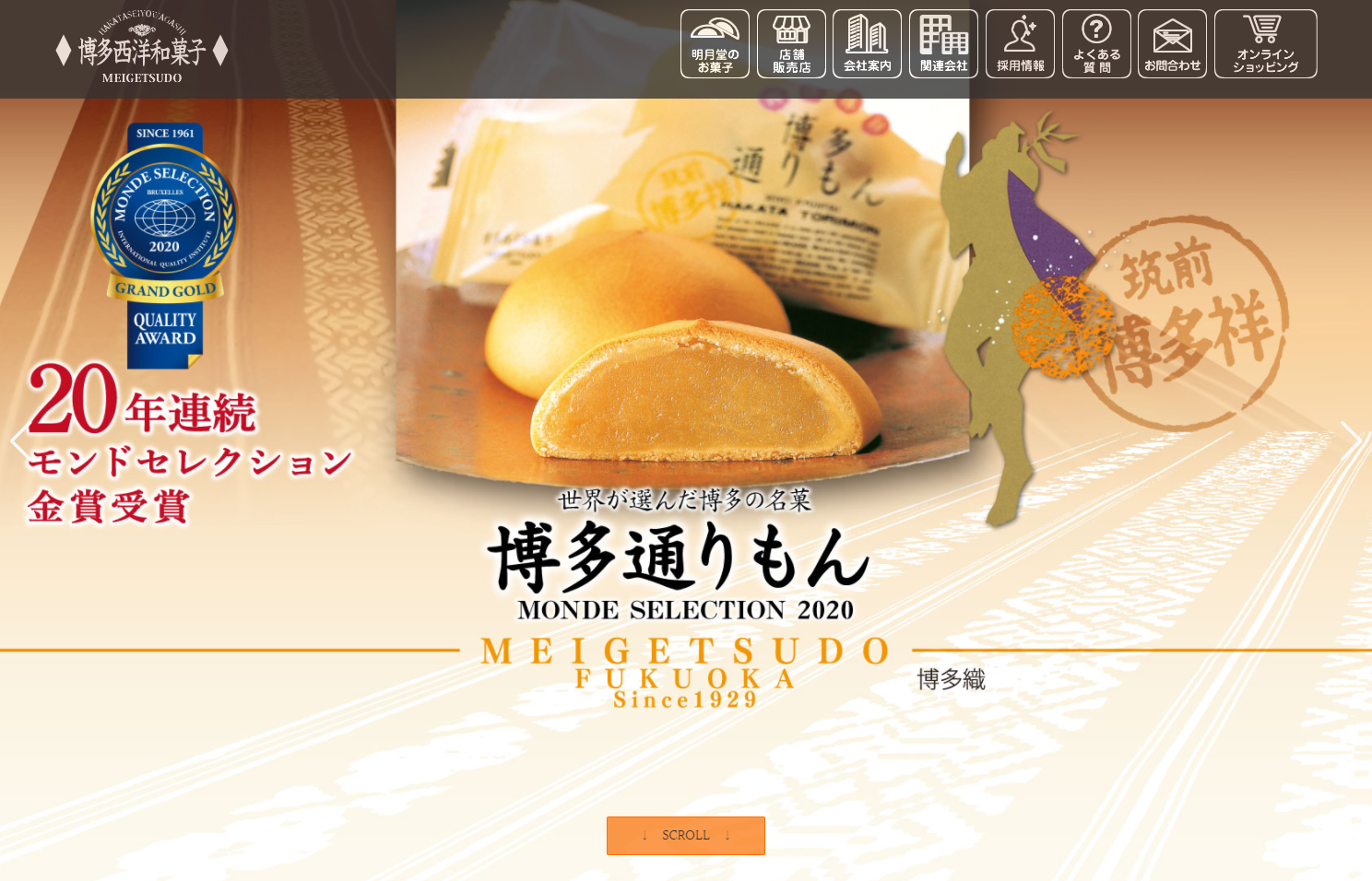 福岡と言えばやはり【 博多通りもん 】は外せませんね。 県内ではほぼどこでも買えます。 ラインナップも5個入り~40個入りまでと幅広くありますので、自身の手に取りやすいものを選べます。 また、明月堂は通りもん以外にも沢山の商品を販売しています。 和洋様々なお菓子の種類は、眺めているだけでも圧巻です。 |